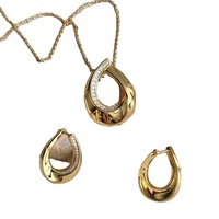 2025 nuovi set di gioielli in argento 925 in argento Sterling 18k oro forma a goccia d'acqua collana orecchino in zircone martellato per donna