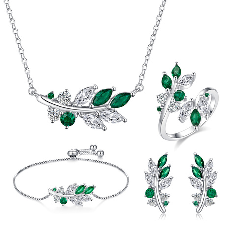 2025 nuovi gioielli in argento di tendenza 925 Set di gioielli in argento Sterling Joyas DE Plata con collana di foglie Set di anelli regolabili