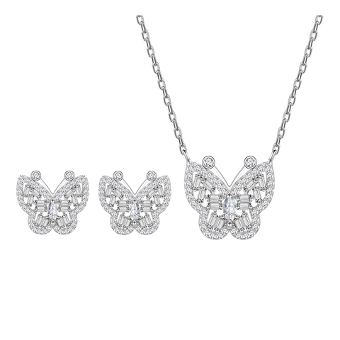 2025 nuovo DE Fashion Jewelry S925 Sterling Sliver farfalla collana e orecchini con diamanti da donna Sliver zircone set di gioielli regalo