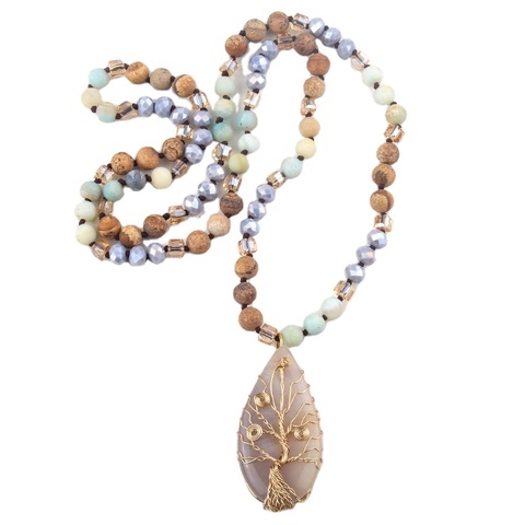 2025 Nueva joyería DE mujer collar bohemio piedras naturales cristal piedra preciosa oro trenzado Árbol de la vida colgante collar
